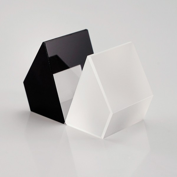 梯形棱鏡是一種像旋轉(zhuǎn)器。光線經(jīng)過此棱鏡后,此像被顛覆。另外,使此棱鏡以其光軸為軸旋轉(zhuǎn)時,像的旋轉(zhuǎn)角為棱鏡旋轉(zhuǎn)角的兩倍。一般而言,梯形棱鏡是利用臨界角原理實現(xiàn)內(nèi)部全反射,所以其視場角有限。同時,保持反射面清潔和使用平行光很重要。不鍍膜的梯形棱鏡主要用于光機系統(tǒng)內(nèi)做圖象旋轉(zhuǎn);鍍膜的梯形棱鏡主要是在反射面鍍鋁反射膜,在入射面鍍增透膜,用于成像系統(tǒng)內(nèi)。